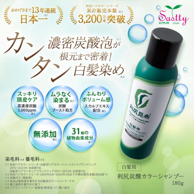 利尻炭酸カラーシャンプー 180g ムラなく染まる 濃密泡 白髪染め 無添加 ノンジアミン ヘアカラー シャンプー 低刺激 利尻昆布 炭酸 敏感肌 ノンシリコン ダメージ 補修 臭わない ヘア ケア 潤い成分 全体染め ダークブラウン ブラック 正規品