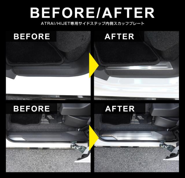 新型アトレー ハイゼットカーゴ S700V S710V S781V サイドステップ スカッフプレート フロント・リアセット 4P 選べる2色 シルバー ブラック 内装 保護 カスタム パーツ アクセサリー ドレスアップ