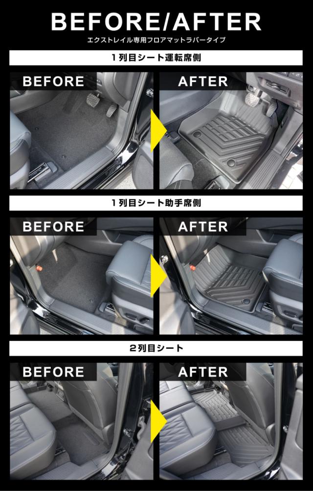 新型エクストレイル【2列シート車/5人乗り車専用】設計のラバータイプマットのセットです。