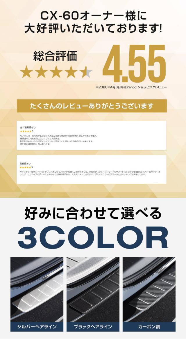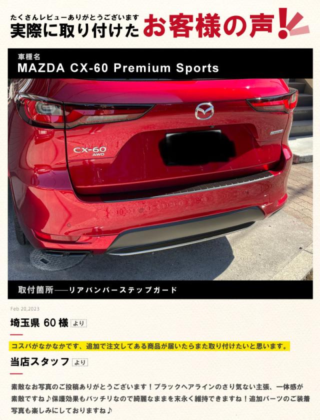 マツダ CX-60 リアバンパーステップガード 1P 車体保護ゴム付き 選べる3色 シルバー ブラック カーボン調 2026年3月一部改良後対応