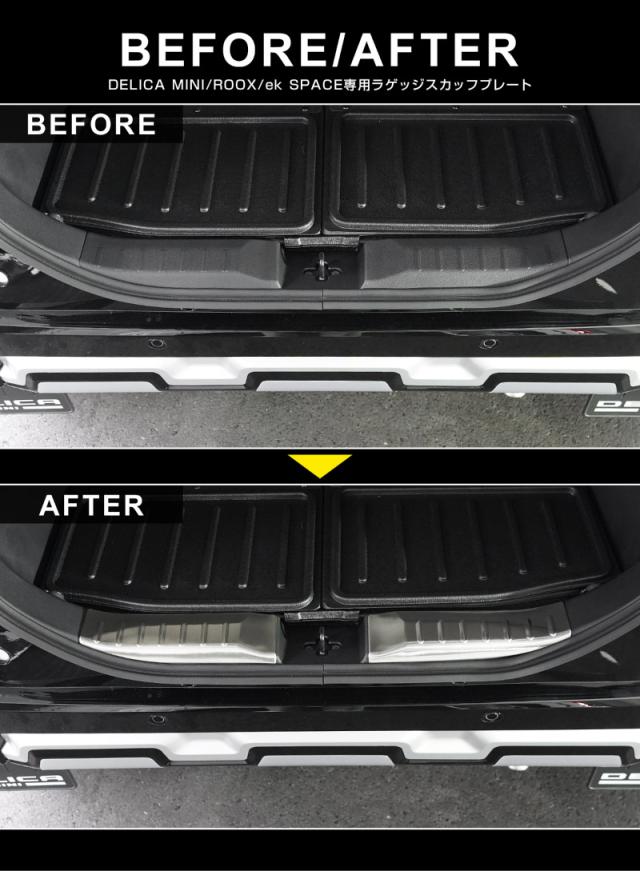 新型デリカミニ ekスペース ルークス 共通 ラゲッジ スカッフプレート 2P 車体保護ゴム付き 2025年フルモデルチェンジ後対応 選べる3色 シルバー ブラック カーボン調