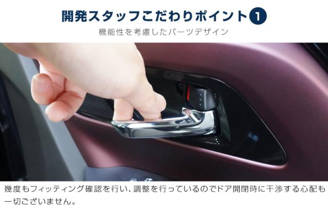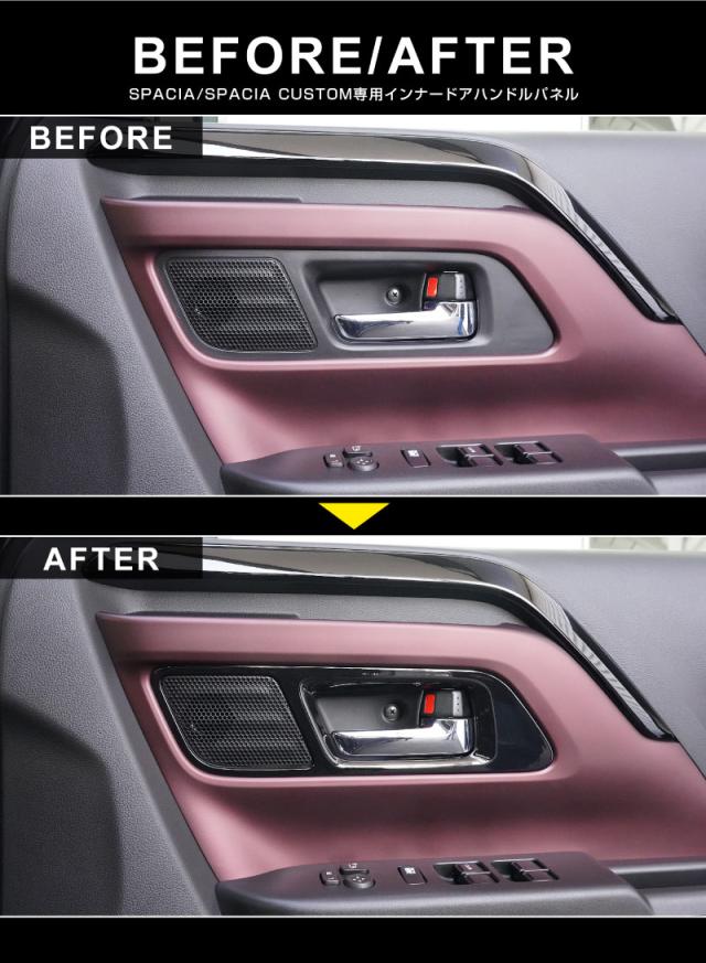 スズキ新型スペーシア・スペーシアカスタムのインナードアハンドルに装着するドレスアップパーツです。
