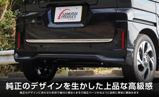 スズキ新型スペーシア・スペーシアカスタムのリアゲートに装着するドレスアップパーツになります。