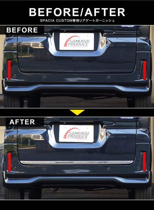 新型スペーシア スペーシアカスタム スペーシアギア MK54S MK94S リアゲート ガーニッシュ 1P 鏡面仕上げ