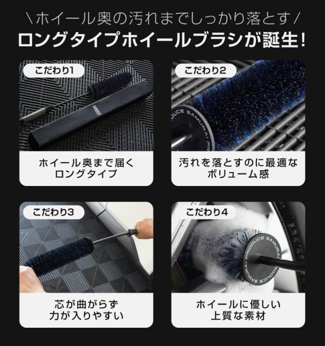 サムライホイールブラシ Sサイズ 適度な硬度で汚れを効果的に除去 長さ約61cmで奥までしっかりブラッシング