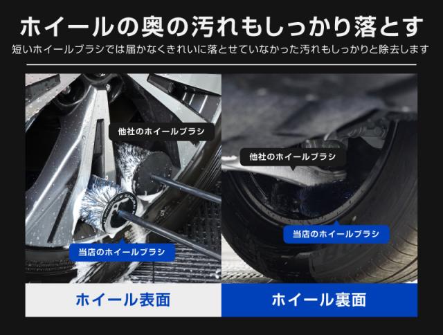 また、ホイールの裏側や隙間などにも容易に入り込むことができ隠れた汚れも徹底的に掃除できます。