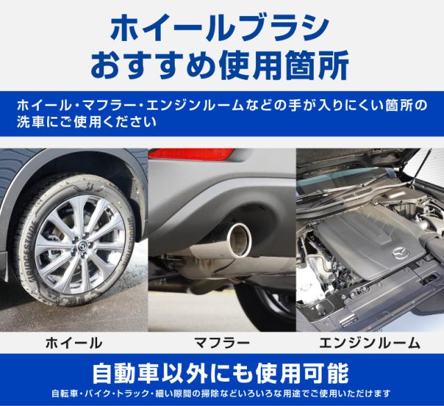 また、ホイールの裏側や隙間などにも容易に入り込むことができ隠れた汚れも徹底的に掃除できます。