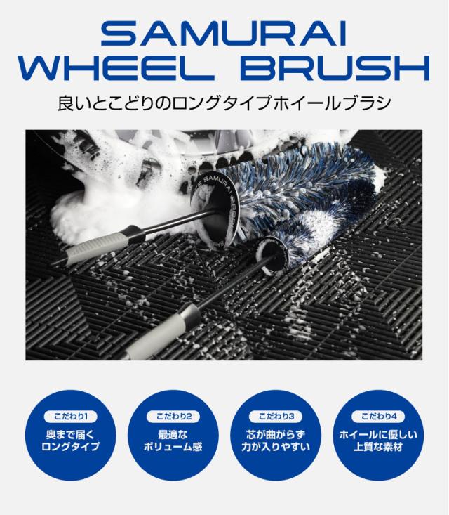 サムライホイールブラシ Lサイズ & Sサイズ 適度な硬度で汚れを効果的に除去 ロングタイプで奥までしっかりブラッシング