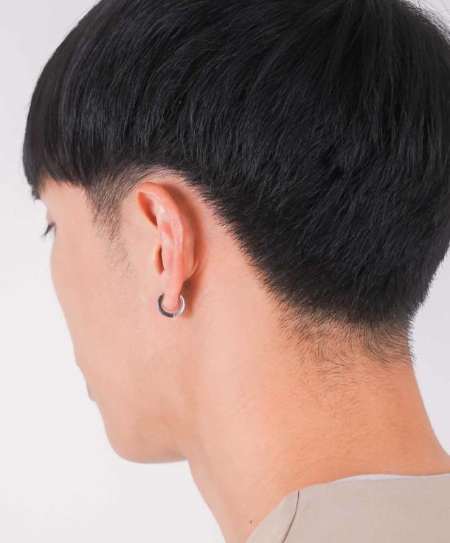 ライオンハート for Gift “THE EDGE” カッティング フープピアス シルバー925 MIXカラー ブラック & シルバー 01EA0991MX LION HEART 18Kポスト 1点売り 片耳用 リング 中折れ メンズ ピアス ブランド プレゼント 誕生日 シルバー