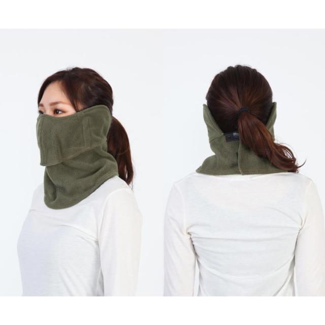 ◇耳ひもを外して上部(マスク部)を中に折り込めば、ネックウォーマーとしても着用できます