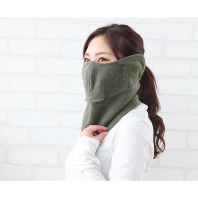 (メール便) ぽかぽかフリースヤケーヌ カーキ UVカットマスク フェイスカバー 948