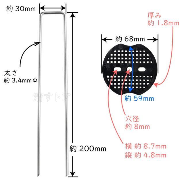 ・シートピン U型杭&黒丸 30cm 100本