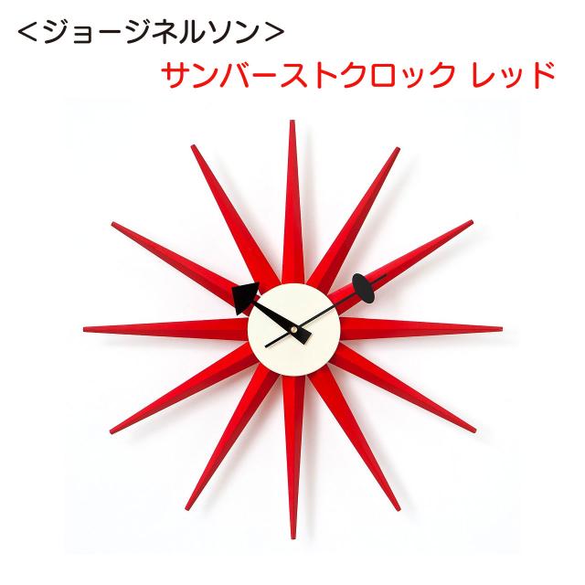 <ジョージネルソン>サンバーストクロック レッド モダン おしゃれ インテリア プレゼント 送料無料