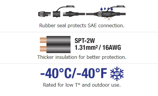 ケーブル定格: 16AWG / 1.31mm2 SPT-2W