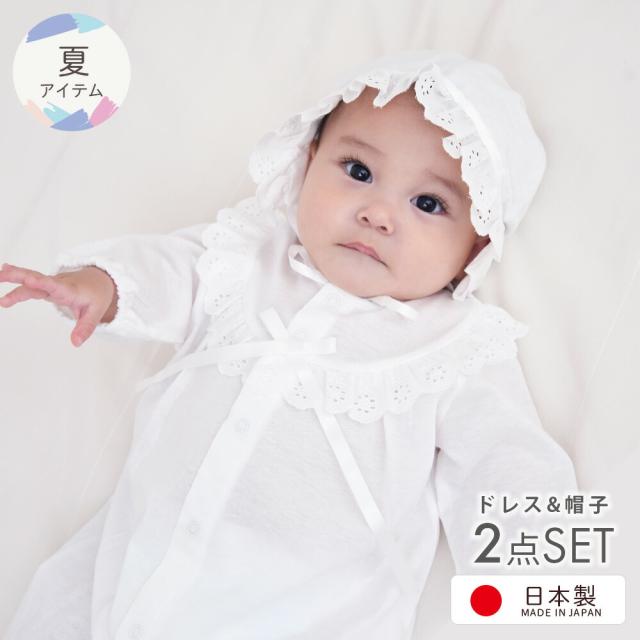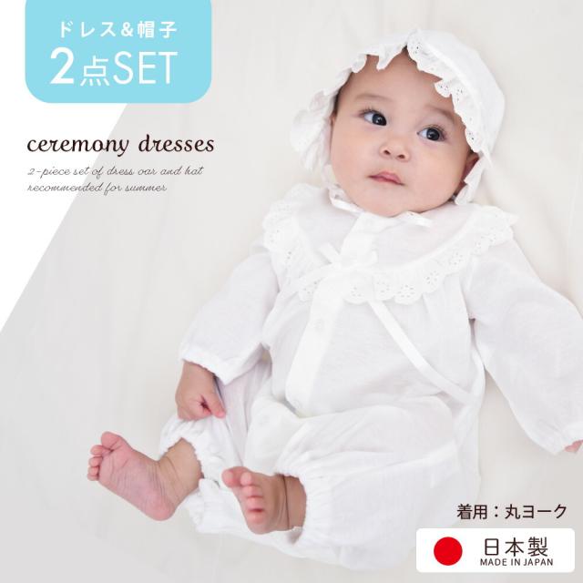 【日本製】夏物素材 お宮参り シンプルデザイン ベビードレス 新生児 赤ちゃん セレモニードレス お帽子付き2点セット 初詣り 初参り 男の子 女の子 男児 女児 退院時 お祝い 出産準備品 フォーマル 出産祝い プレゼント ギフト
