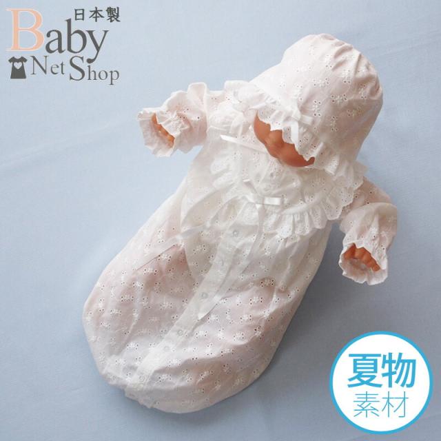 【日本製】夏物素材 セレモニードレス 新生児 綿レース お帽子付きベビードレス2点セット ベビー お宮参り お食い初め 赤ちゃん 日本製 出産祝い ギフト プレゼント 出産準備
