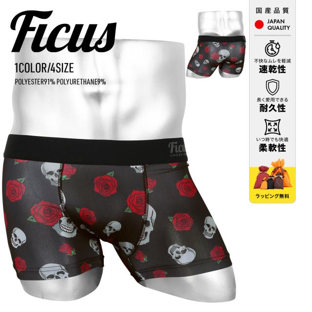 SALE ツルツル ボクサーパンツ FICUS フィークス メンズ アンダーウェア 下着 限定 花柄 スカル おすすめ 人気 蒸れない 骸骨 ドクロ 速乾 花柄 ブランド 男性 紳士 プレゼント サラサラ プチギフト 誕生日 彼氏 父 息子 ギフト 記念日 大きいサイズ ボクサーブリーフ