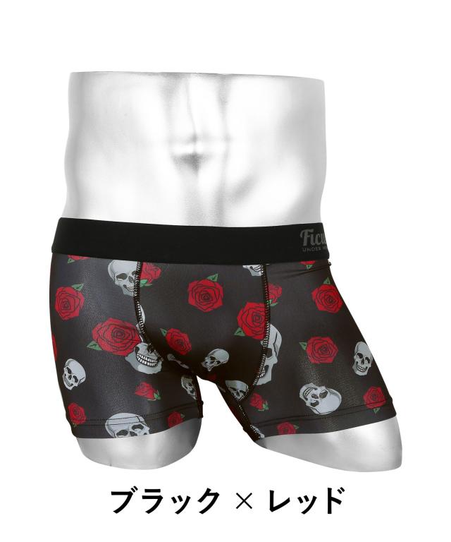 スカル×ローズがありそうでなかったシックなデザインのFICUS(フィークス)のメンズボクサーパンツ。