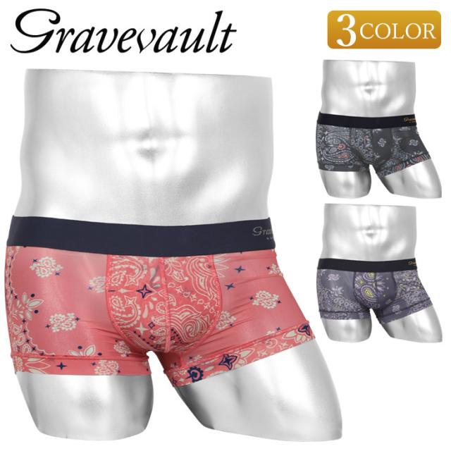 Gravevault グレイブボールト 国産 日本製 ショート ボクサーパンツ メンズ 下着 高級 ハイブランド おすすめ 人気 かっこいい セクシー ツルツル 速乾 芸能 ペイズリー バンダナ柄 ブランド 男性 プレゼント 誕生日 サラサラ 父 ギフト 定番 ボクサーブリーフ