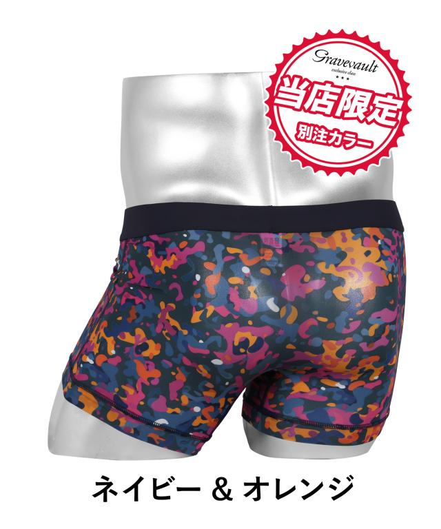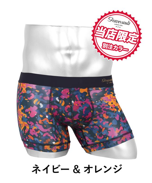 ネイビー&オレンジは当店限定カラー!Gravevault(グレイブボールト)のメンズショートボクサーパンツ。