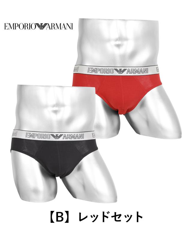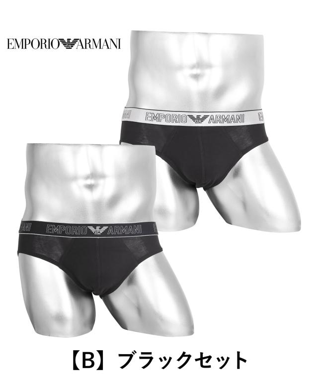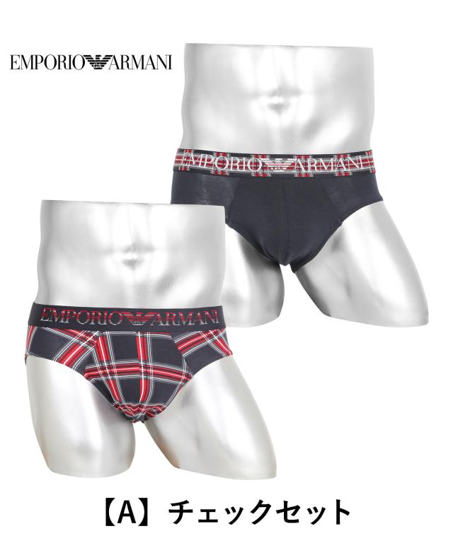 2枚セット エンポリオ アルマーニ EMPORIO ARMANI ブリーフ メンズ アンダーウェア 高級 ハイブランド 高級 ギフトBOX コットン 綿 綿混 ロゴ ワンポイント 無地 チェック 格子柄 男性 誕生日 プレゼント 彼氏 父 息子