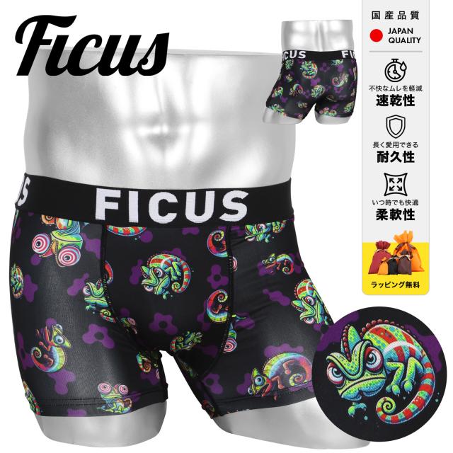 FICUS フィークス ボクサーパンツ メンズ アンダーウェア 下着 速乾 ツルツル おしゃれ かっこいい カメレオン サイケデリック 当店限定 ロゴ ワンポイント ブランド 男性 紳士 プレゼント プチギフト 誕生日プレゼント 彼氏 父 息子 ギフト 記念日