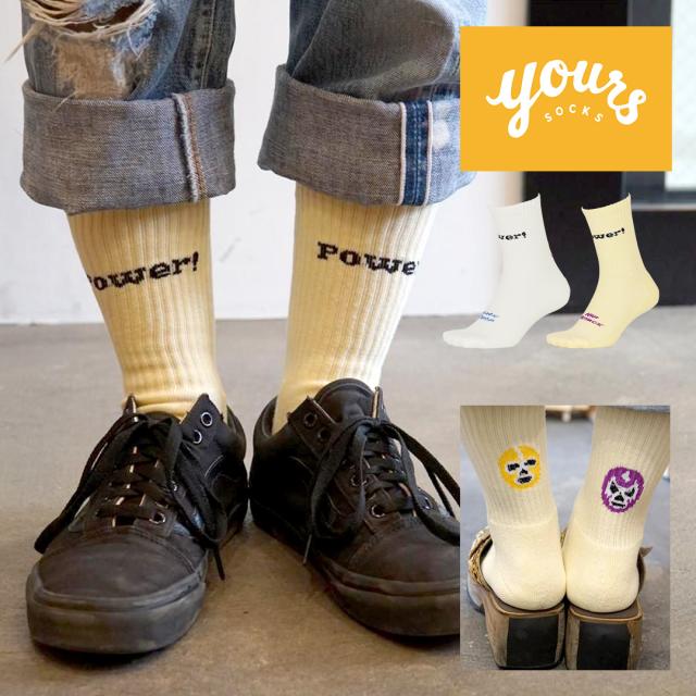 WOW!大きめの文字が目を引くデザイン。yours SOCKS(ユアーズソックス)のメンズクルーソックス。