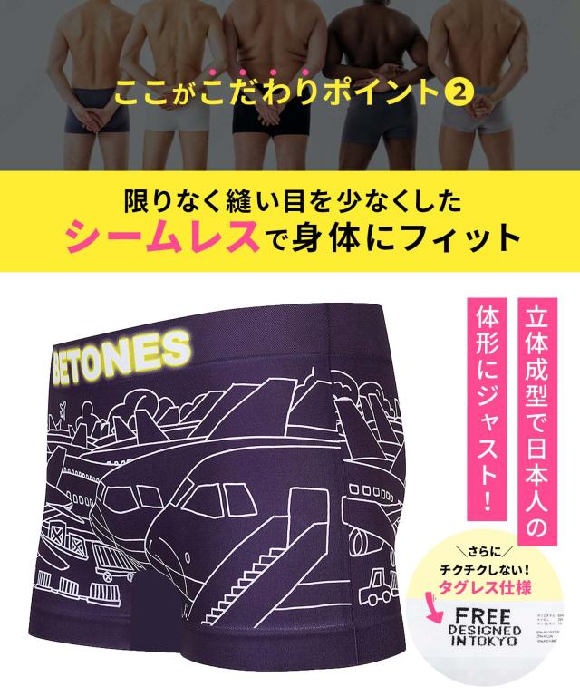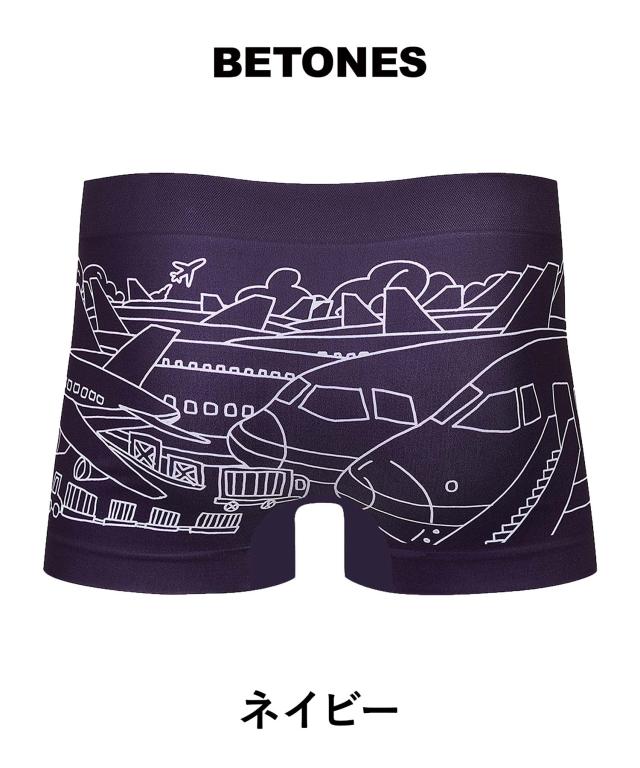 メール便 ビトーンズ BETONES ボクサーパンツ メンズ アンダーウェア 飛行機 超伸縮 フリーサイズ シームレス タグレス おしゃれ かわいい ツルツル 速乾 立体成型 ロゴ ワンポイント ブランド 男性 彼氏 父 息子