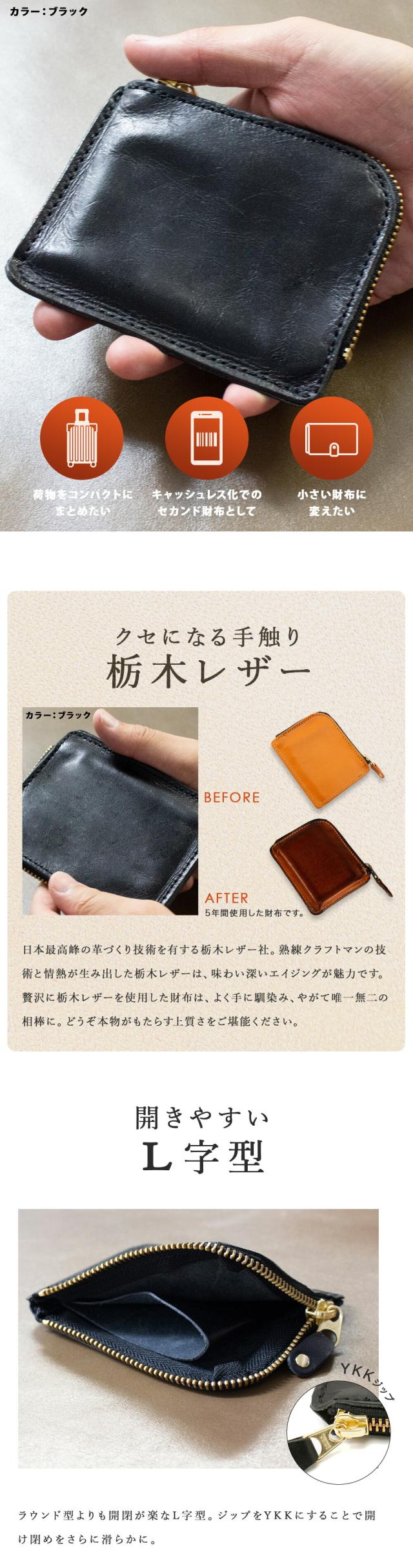 栃木レザー L字ファスナー ミニ財布 小さい財布 ミニマリスト キャッシュレス 本革 軽い 薄い コンパクト マルチウォレット メンズ レディース おしゃれ コインケース カードケース ブラック 黒 ブラウン ギフト プレゼント ラッピング可 送料無料