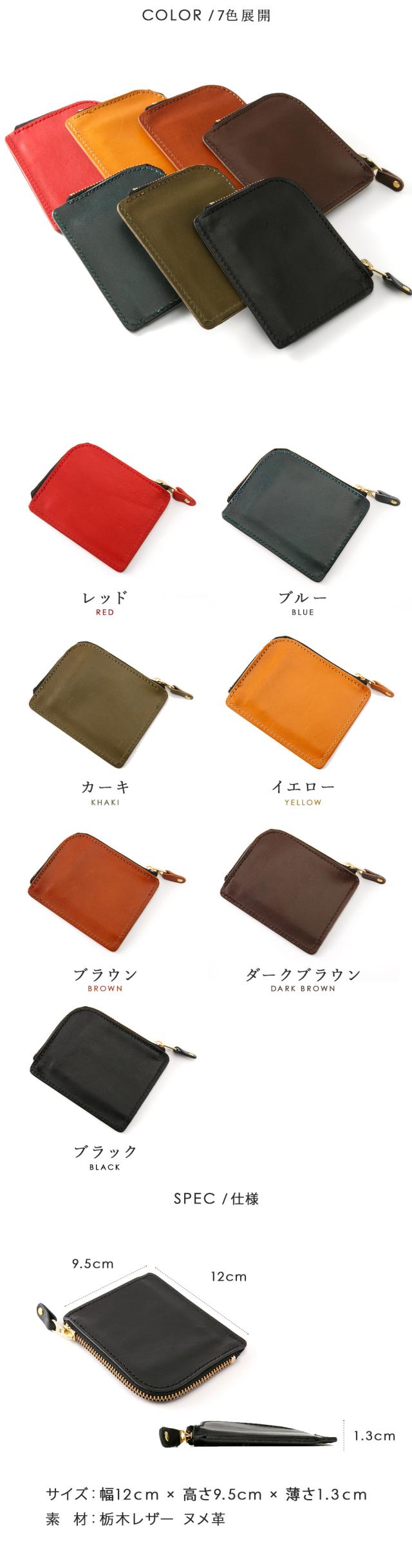 栃木レザー L字ファスナー ミニ財布 小さい財布 レザー 牛革 薄い 薄型 軽量 軽い プチウォレット 小銭入れ カード入れ キャメル ボルドー ブルー ネイビー イエロー ギフト プレゼント