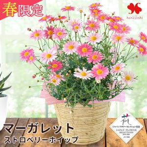 春限定 マーガレット ストロベリーホイップ 5号 鉢 鉢植え 2/27〜4/26まで日時指定OK 鉢植え プレゼント ギフト バスケット付 多年草 毎