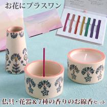 【お花にプラスワン】メモリアルセット《仏具・花器3点セット》&レインボーフラワーズ《7種の香りのお線香セット》陶器製 キャンドル お