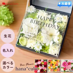 [冷蔵便]でお届け ボックスフラワー hana cube 生花アレンジver 名入れ フラワーボックス 花 誕生日 プレゼント 女性 母 友達 男性 花 ギ