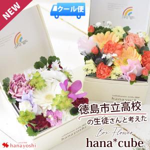[冷蔵便]でお届け 徳島市立高校の生徒さんと考えた ボックスフラワー 生花 hana cube x IRP ロスフラワー をなくしたい 花 誕生日 プレゼ