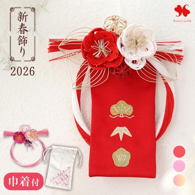 正月飾り 花 巾着付 水引飾り お正月壁飾り スタンド付 水引 しめ飾り 花飾り 壁掛け お正月 花 玄関 おしゃれ 正月 迎春 ギフト プレゼ
