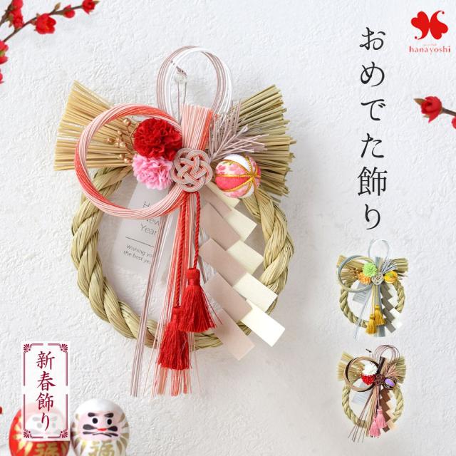 正月飾り 2026 新作 おめでた飾り 選べる3種類 お正月 当店オリジナル しめ飾り 和飾り 造花 お正月飾り 花 玄関 ドア しめ縄 おしゃれ