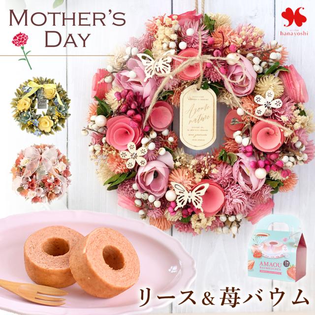 母の日 リース 花とスイーツ フラワーリース と スイーツ あまおうのしっとりバームボックス セット バームクーヘン プレゼント ギフト