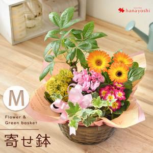 季節のおまかせ花鉢とグリーンの 寄せ入れ Mサイズ フラワーバスケット 鉢植え 鉢花 フラワーギフト お誕生日 ギフト 花 誕生日 プレゼン