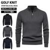 送料無料 新作 ゴルフウェア メンズ ニットセーター ハーフジップ 編地 編み目 無地 長袖 タートル ハイネック トップス おしゃれ 秋冬
