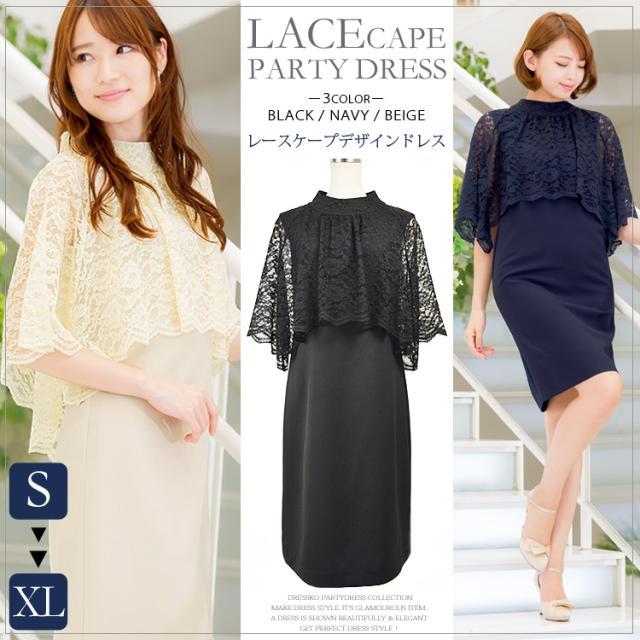 パーティードレス 結婚式 ドレス 大きいサイズ スカラップレース パールネック パーティードレス 4サイズ S M L XL 結婚式ドレス お呼ば