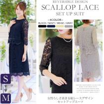 セットスーツ パーティードレス 結婚式 ドレス 大きいサイズ スーツ スカラップレース セットアップ スーツ 4サイズ S M L LL 結婚式ドレ