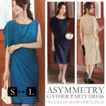 あす楽 パーティードレス 結婚式 ドレス 大きいサイズ アシンメトリー ギャザーデザイン パーティードレス 3サイズ S M L 結婚式ドレス