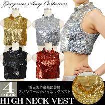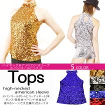 スパンコール ダンス衣装 トップス 【ハイネック&ノースリーブデザインシャイニートップス・タンクトップ】コスチューム ダンス衣装 ガ