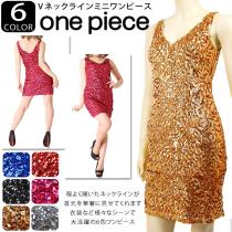 スパンコール ダンス衣装 ワンピース 6COLOR Vネック スパンコール ミニワンピース ミニドレス タンクトップ ワンピース キャミワンピ