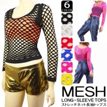 ダンス 衣装 ヒップホップ SEXY 選べる2タイプ ボトルネック Uネック メッシュトップス メッシュロングTシャツ 2COLOR ダンス衣装 スパン