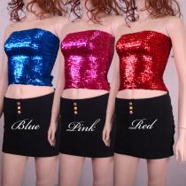 スパンコール ダンス衣装 トップス 5COLOR フリンジ付 スパンコールトップス タンクトップ コスチューム ダンス衣装 ステージ衣装 ダンス
