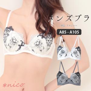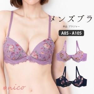 フラワー刺繍 ガーリー 可憐 メンズランジェリー パッド入り ブラジャー A85-A105 (JM-2143-B)[メール便不可]【 男ブラ メンズブラ 乙女