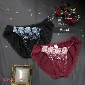 フラワー刺繍 ガーリー 可憐 メンズランジェリー ショーツ (JM-2143-S)[★メール便OK]【 M L LL 3L 4L フルバック メンズショーツ コスプ
