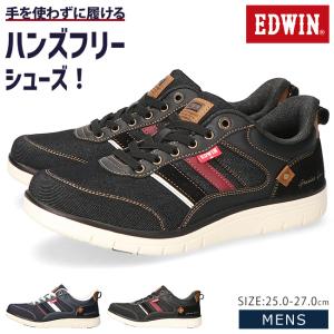 エドウィン ハンズフリーシューズ スニーカー メンズ 手を使わずに履ける ローカット 履きやすい 歩きやすい 疲れにくい 滑りにくい 滑ら