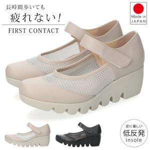 ファーストコンタクト パンプス 厚底 履きやすい 歩きやすい 痛くない ストラップ 疲れない 脱げない 蒸れない ウェッジソール ラウンド
